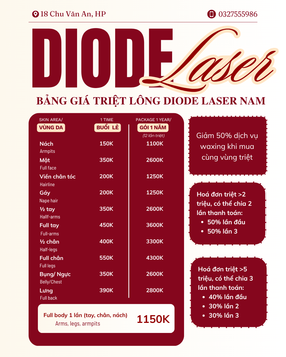 3. BẢNG GIÁ TRIỆT LÔNG VÀ CHƯƠNG TRÌNH KHUYẾN MẠI ĐANG CÓ