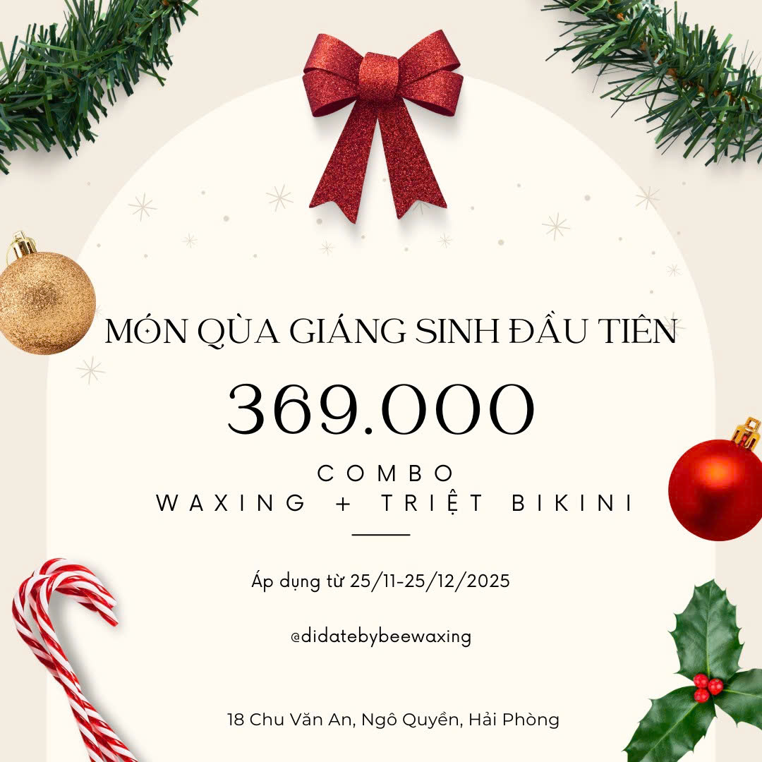Đón Giáng Sinh rạng ngời với Combo Waxing + Triệt Lông cao cấp chỉ 369K tại Didate by Beewaxing. Ưu đãi giới hạn từ 25/11 – 25/12/2025. Waxing triệt lông giá rẻ nhất mùa lễ hội!